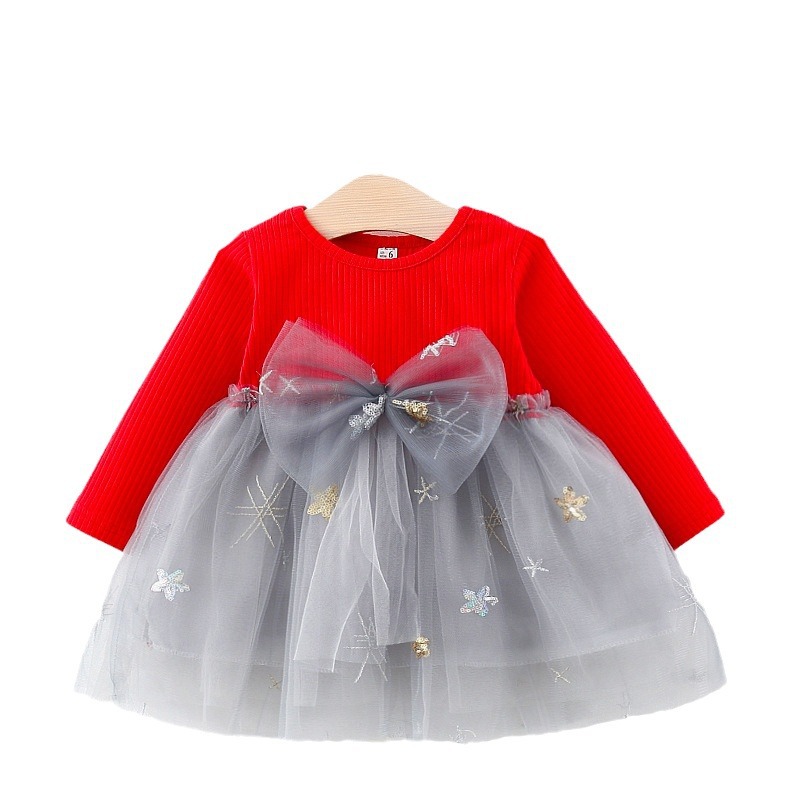 A beautifully crafted baby dress designed with a soft ribbed long-sleeve bodice and a delicate layered tulle skirt. The dress features a charming bow detail at the waist, adding a touch of elegance, while subtle embroidered accents on the skirt create a playful yet refined look. Designed to be lightweight and comfortable, it offers a graceful silhouette perfect for special moments, celebrations, or stylish everyday wear.