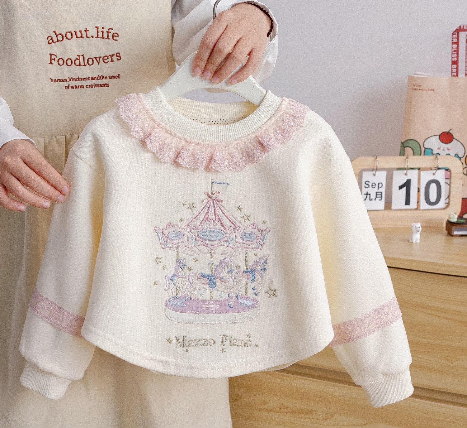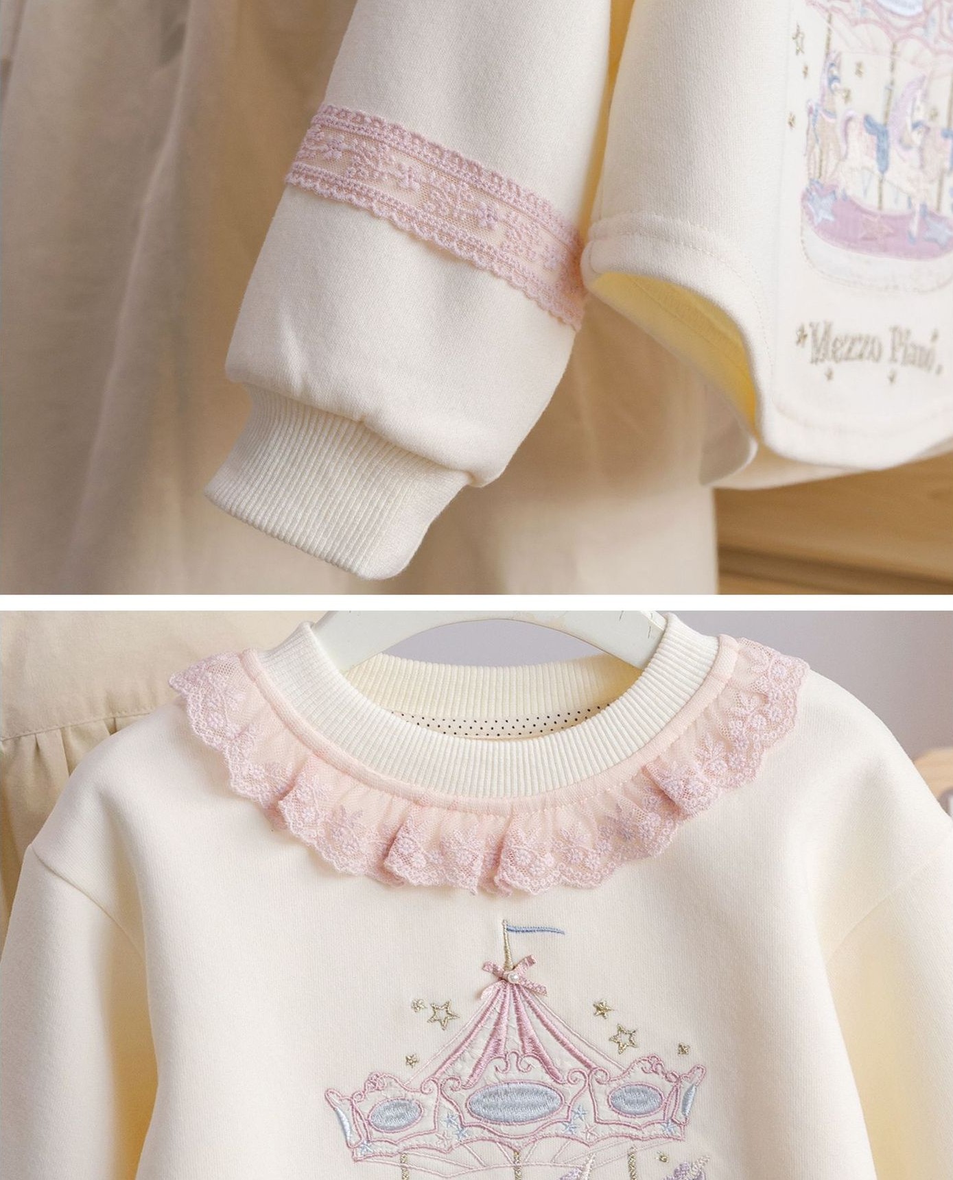 Soft girls sweatshirt set with lace collar and dreamy pony design