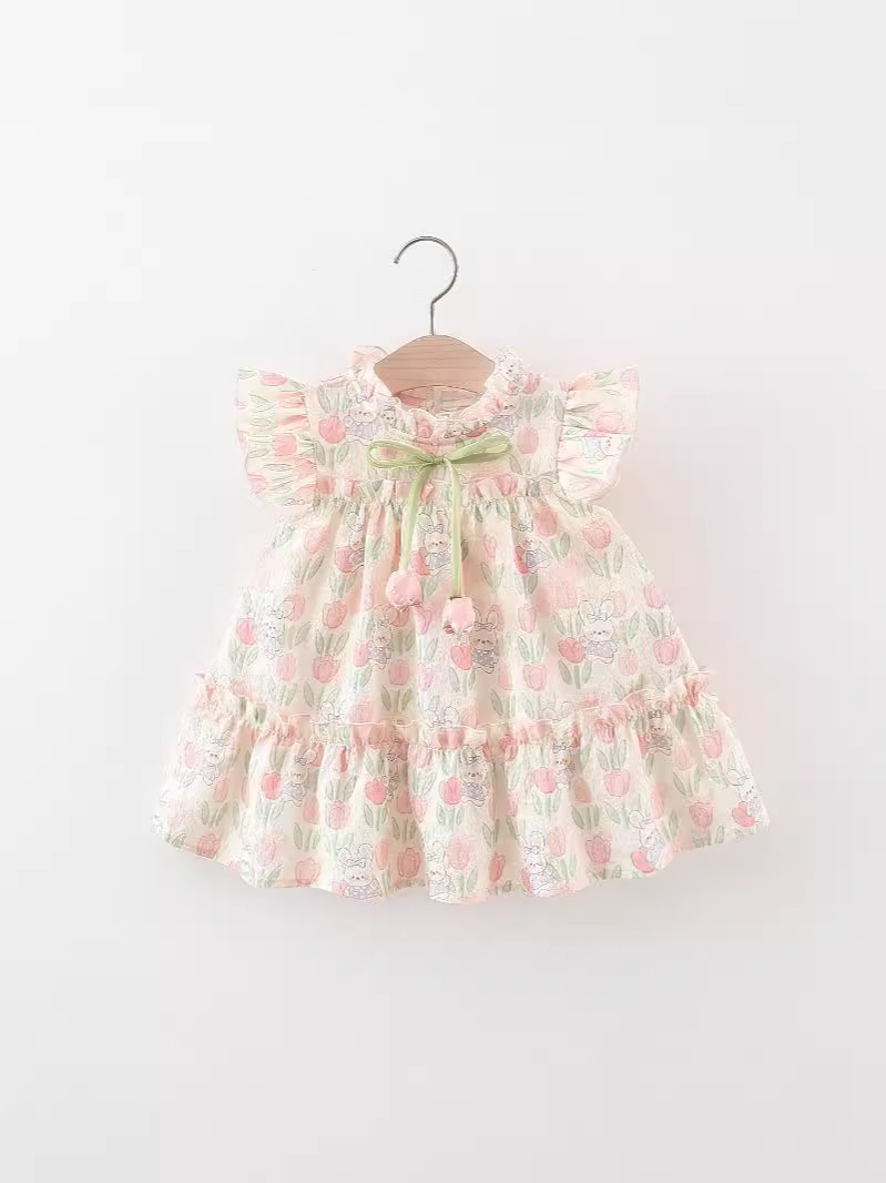 This charming cotton dress is made for sunny days and sweet childhood moments. Crafted from soft and breathable fabric, it keeps your little girl cool and comfortable while allowing her to move freely and play with ease. The flutter sleeve design adds a delicate and playful touch, giving the dress a light and airy feel that is perfect for warm weather. A beautiful floral inspired print enhances its gentle and cheerful look, while the layered skirt creates a lovely flow with every twirl. The relaxed fit makes it ideal for everyday outings, family visits, birthday celebrations, or casual photo moments. Designed with both comfort and style in mind, this dress is easy to wear and easy to love. At Peekaboo Place, we celebrate pieces that capture the joy of childhood, and this cotton summer dress brings softness, sweetness, and effortless charm together in one adorable outfit.